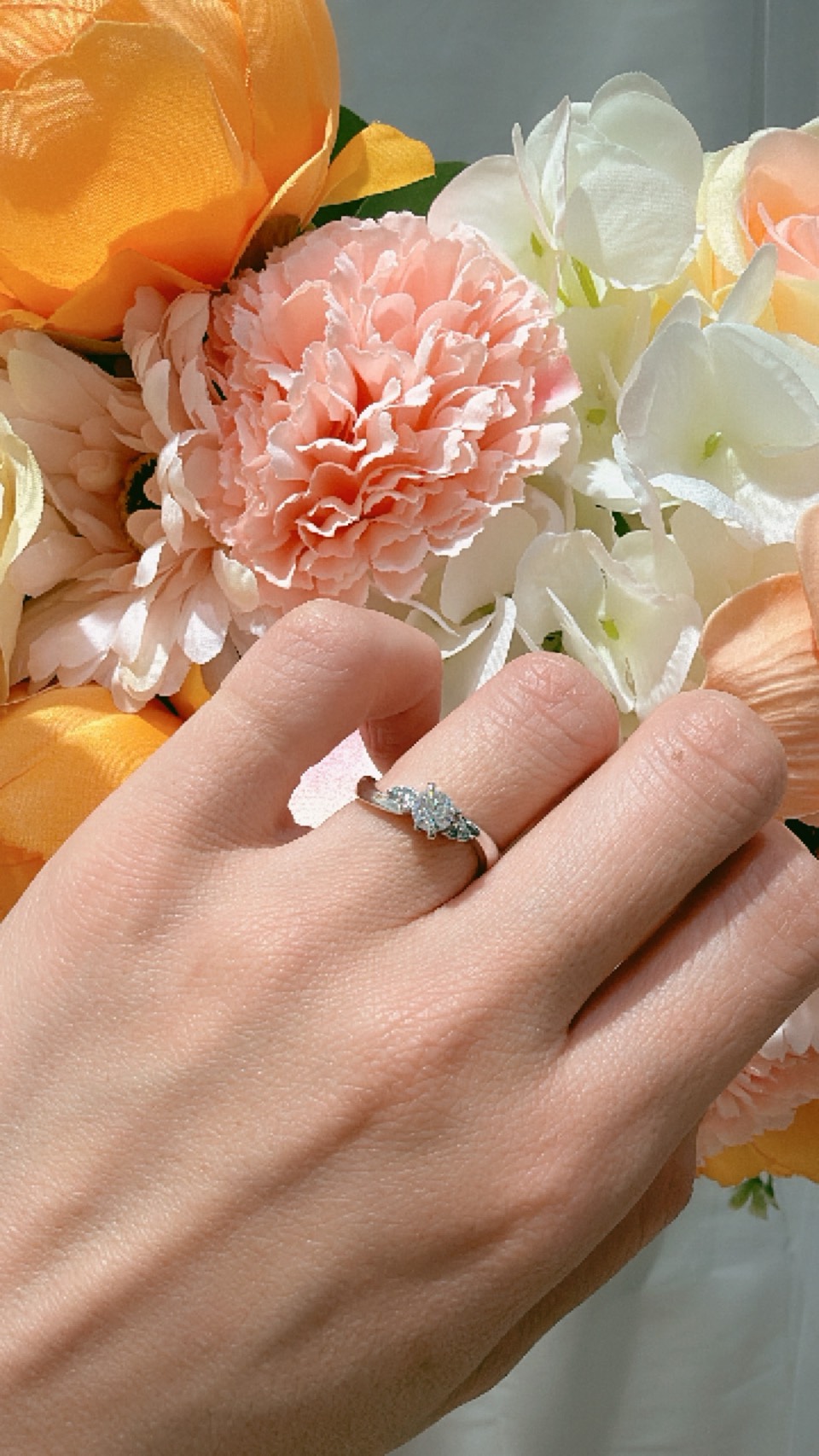 ピンク・オレンジ系を基調にしたお花で、ふんわりやわらかい感じに仕上げていただきました🌼